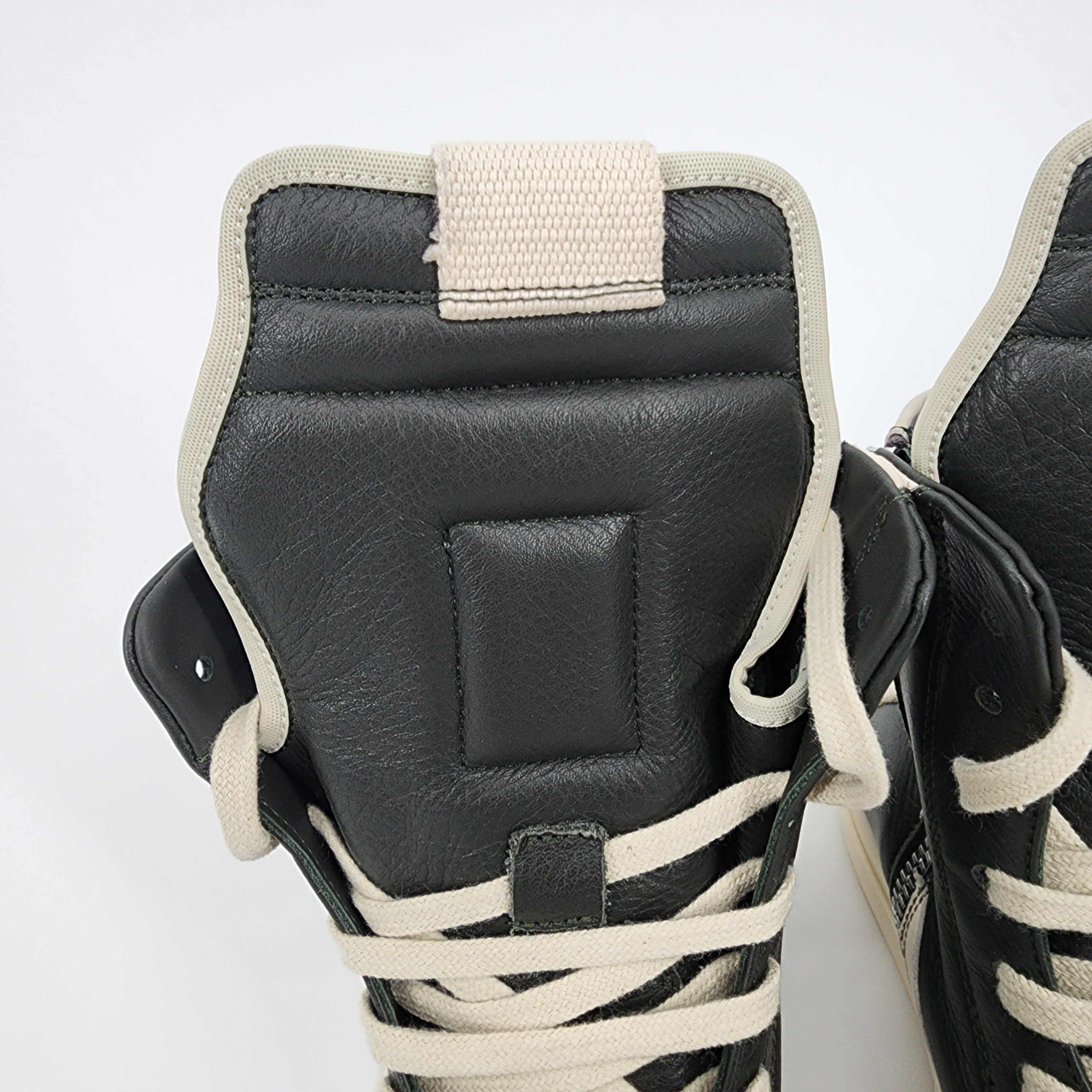 Rick Owens Kids Geobasket Sneakers in Dark Green/Milk White, Size 33 – iconic designer sneakers with bold style and premium craftsmanship. Shop this luxury kids’ sneaker on sale now, perfect for standout streetwear looks.
