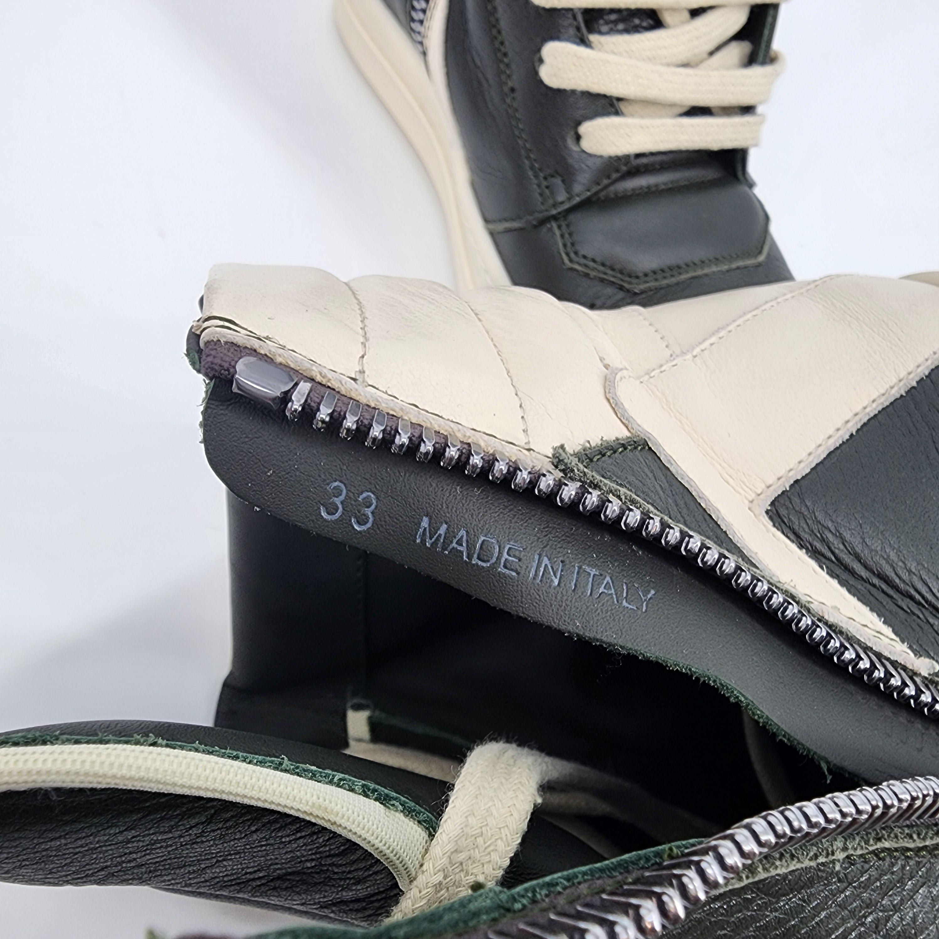 Rick Owens Kids Geobasket Dark Green/ Milk White Sneaker - Size 33