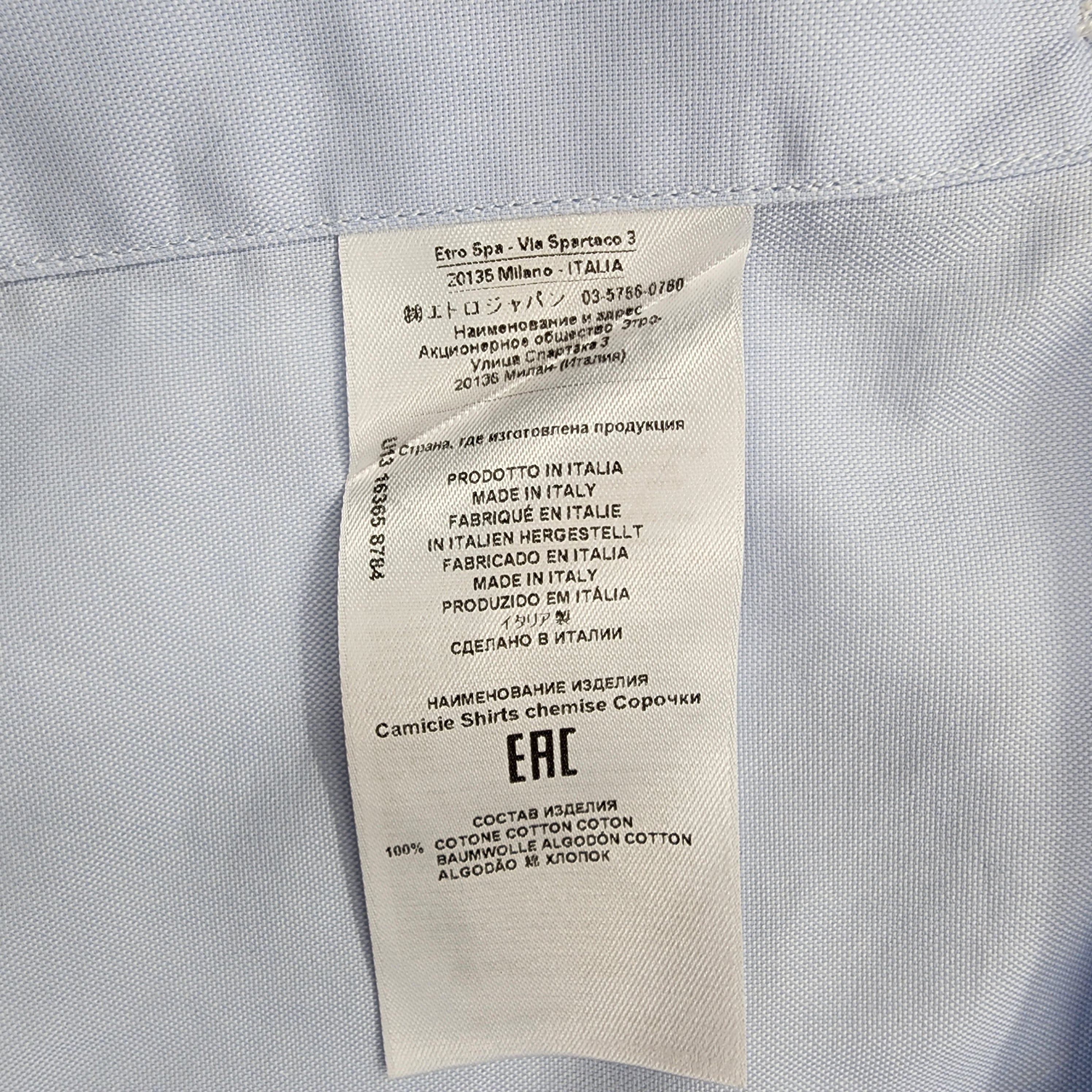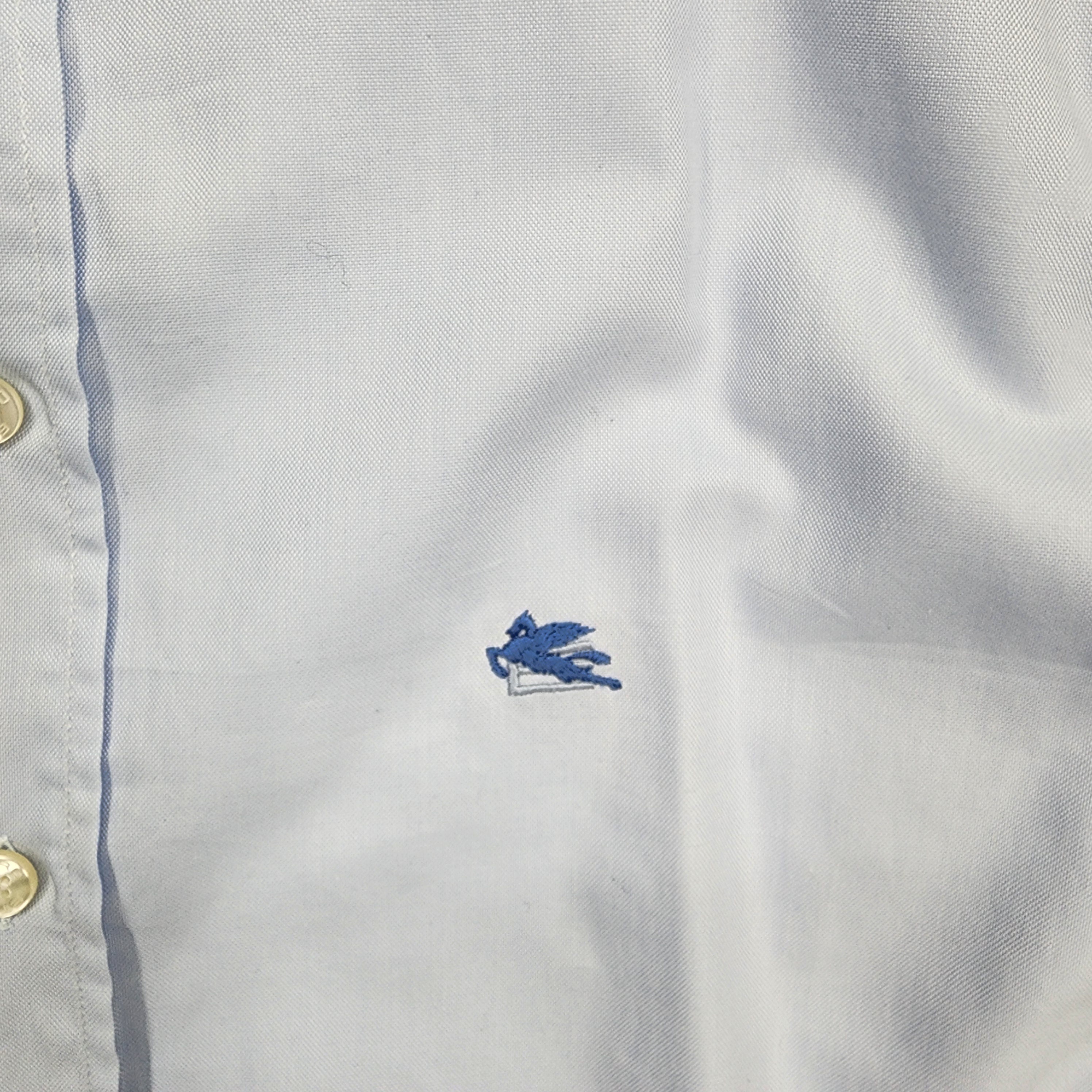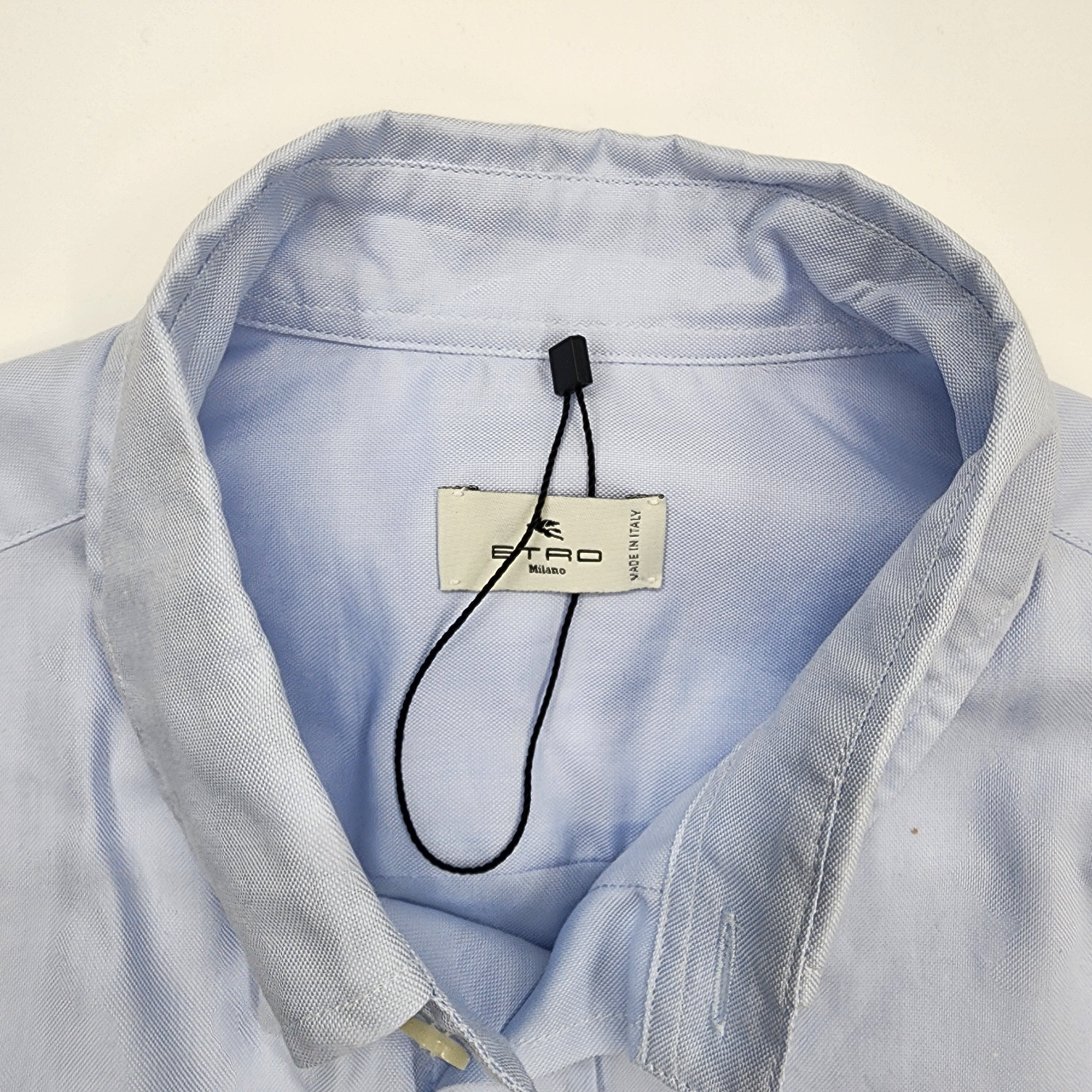 ETRO Logo-Embroidered Light Blue Long-Sleeve Shirt in Size M – luxury designer shirt crafted from premium cotton with the signature ETRO logo embroidery. Shop this exclusive piece on sale today for a refined, elegant, and effortlessly stylish look.