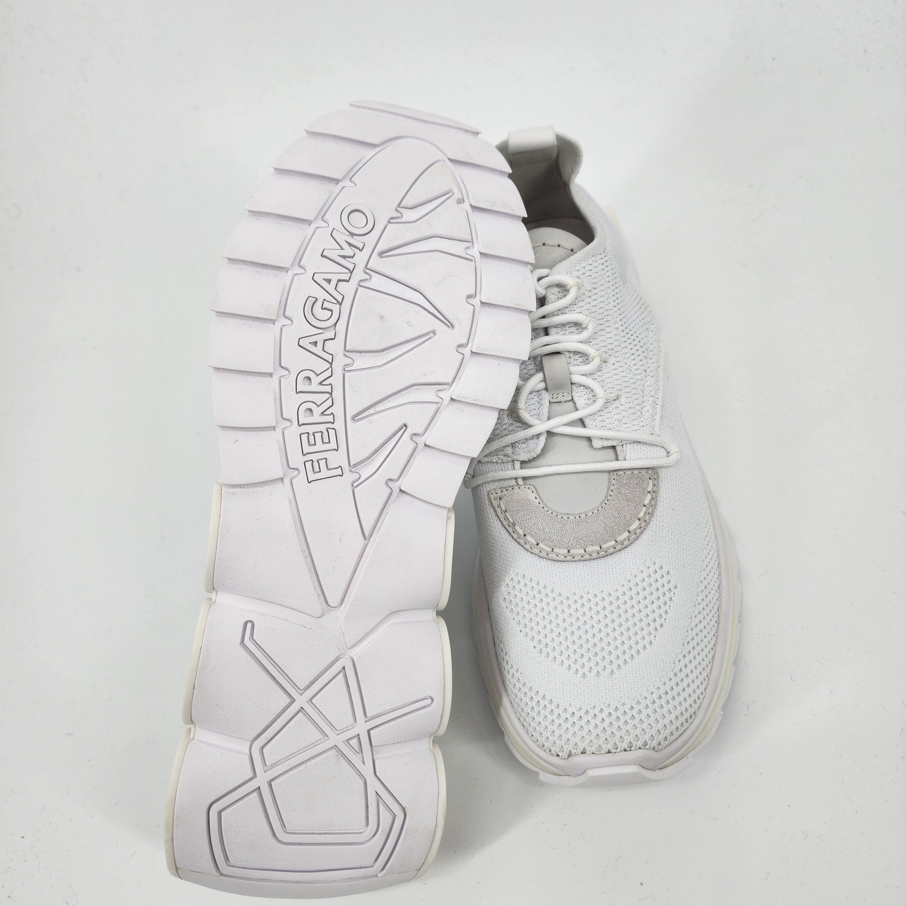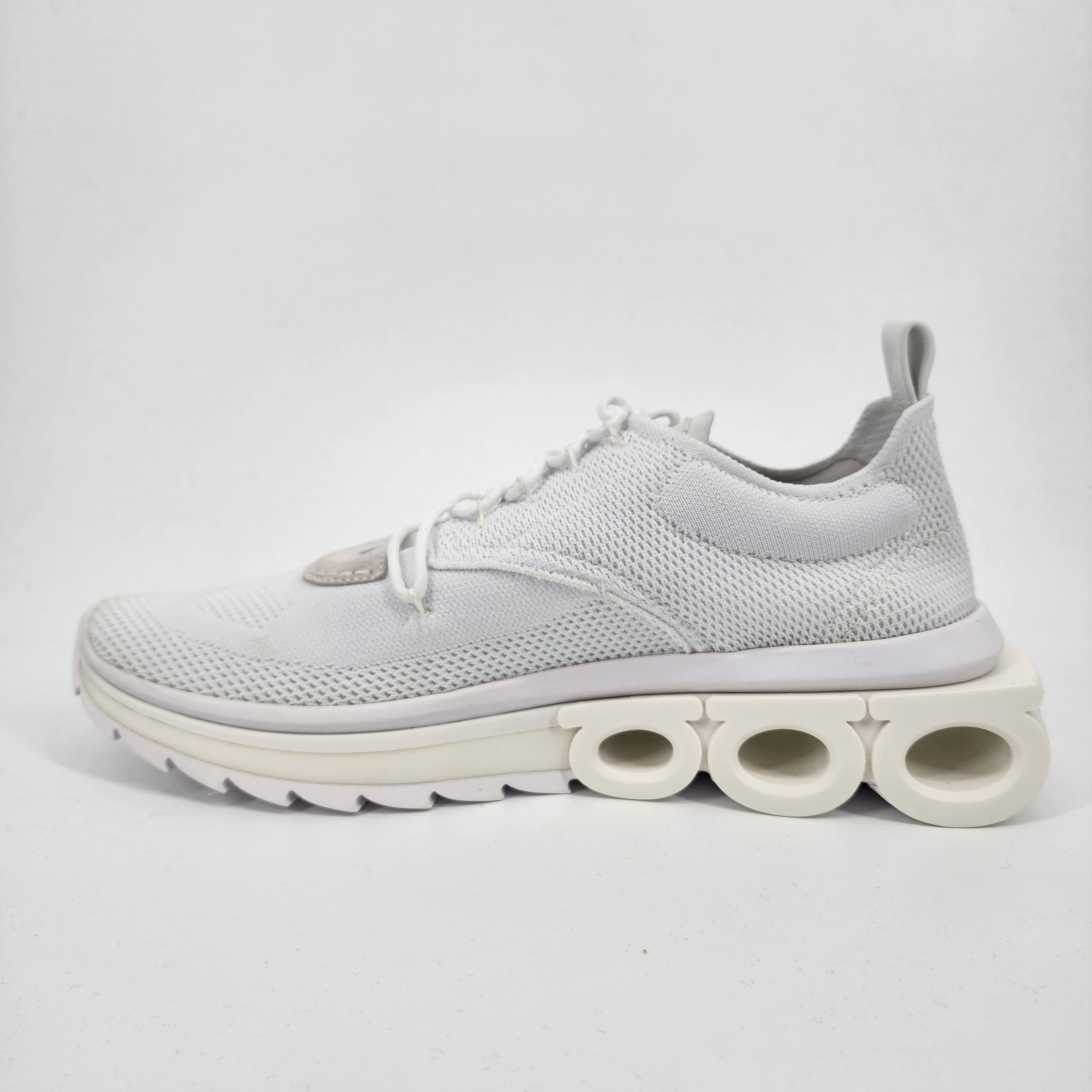 Ferragamo Knitted Running White Trainers for Men in UK Size 9 – luxury comfort meets modern athletic design. Shop these premium Ferragamo sneakers on sale now, perfect for sleek everyday and sporty looks.